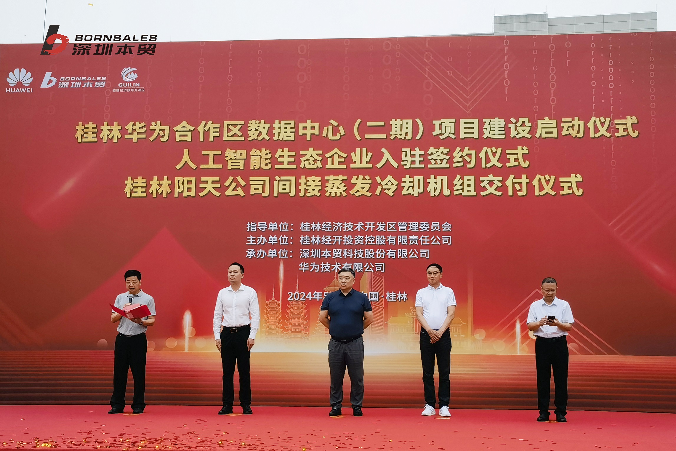 深圳本貿(mào)在廣西承建的第一個大型數(shù)據(jù)中心項目正式啟動。517日,廣西桂林華為合作區(qū)數(shù)據(jù)中心二期項目建設(shè)啟動儀式在桂林經(jīng)濟技術(shù)開發(fā)區(qū)數(shù)字經(jīng)濟產(chǎn)業(yè)園舉行。該項目作為桂林市數(shù)字經(jīng)濟產(chǎn)業(yè)發(fā)展的重要里程碑,標志著桂林在構(gòu)建智慧城市和推動信息化產(chǎn)業(yè)方面邁出了堅實的步伐。桂林經(jīng)開區(qū)黨工委副書記、管委會常務(wù)副主任陽健青,深圳本貿(mào)科技股份有限公司董事長謝鄂強,華為技術(shù)有限公司桂林總經(jīng)理陳秋實等人出席儀式并致辭。