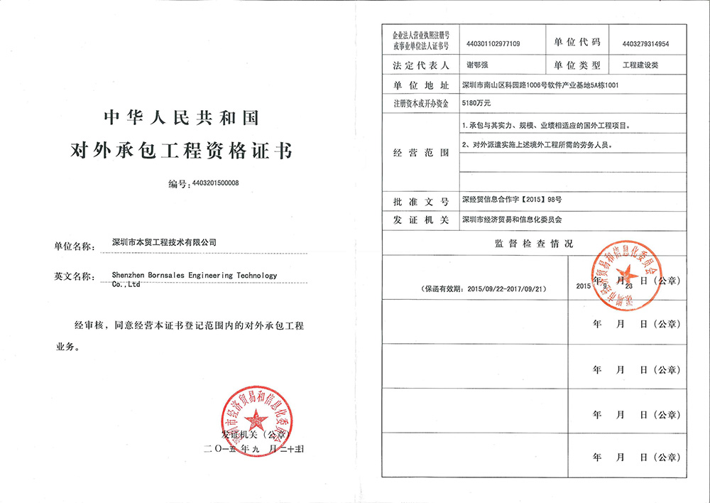 中華人民共和國(guó)對(duì)外承包工程資格證